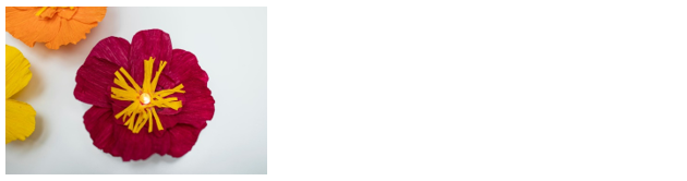 Ohjeessa kukkakoriste on valmistettu keltaisesta, oranssista ja violetinpunaisesta kreppipaperista. Voit valita kreppipaperin värin oman maun mukaan.