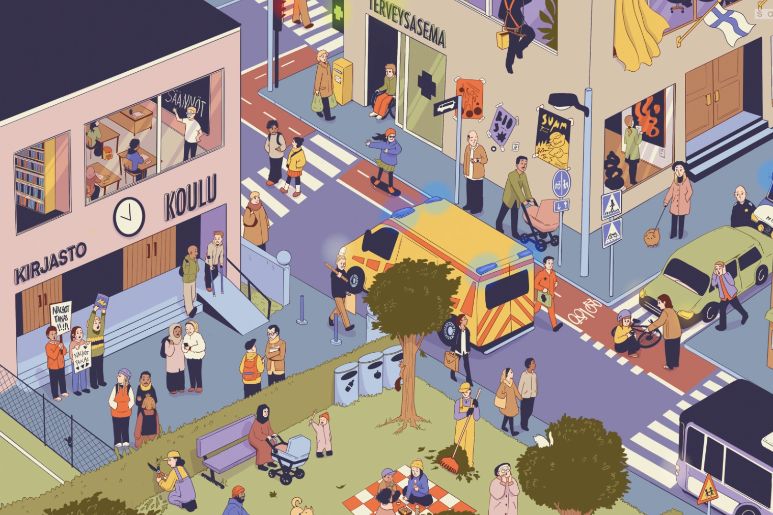 Sarjan ytimessä on yhdessä tekeminen ja osallisuus. Oppimateriaalin sivuilla ja motivointivideoissa seikkailee viisi alakouluikäistä lasta, jotka tuovat yhteiskuntaopin teemat lähelle oppilasta. Ymmärrettävät keskustelunaiheet ja sisällöt motivoivat koko luokkaa, ja samalla yhteiskuntaopin tiedot ja taidot kehittyvät.