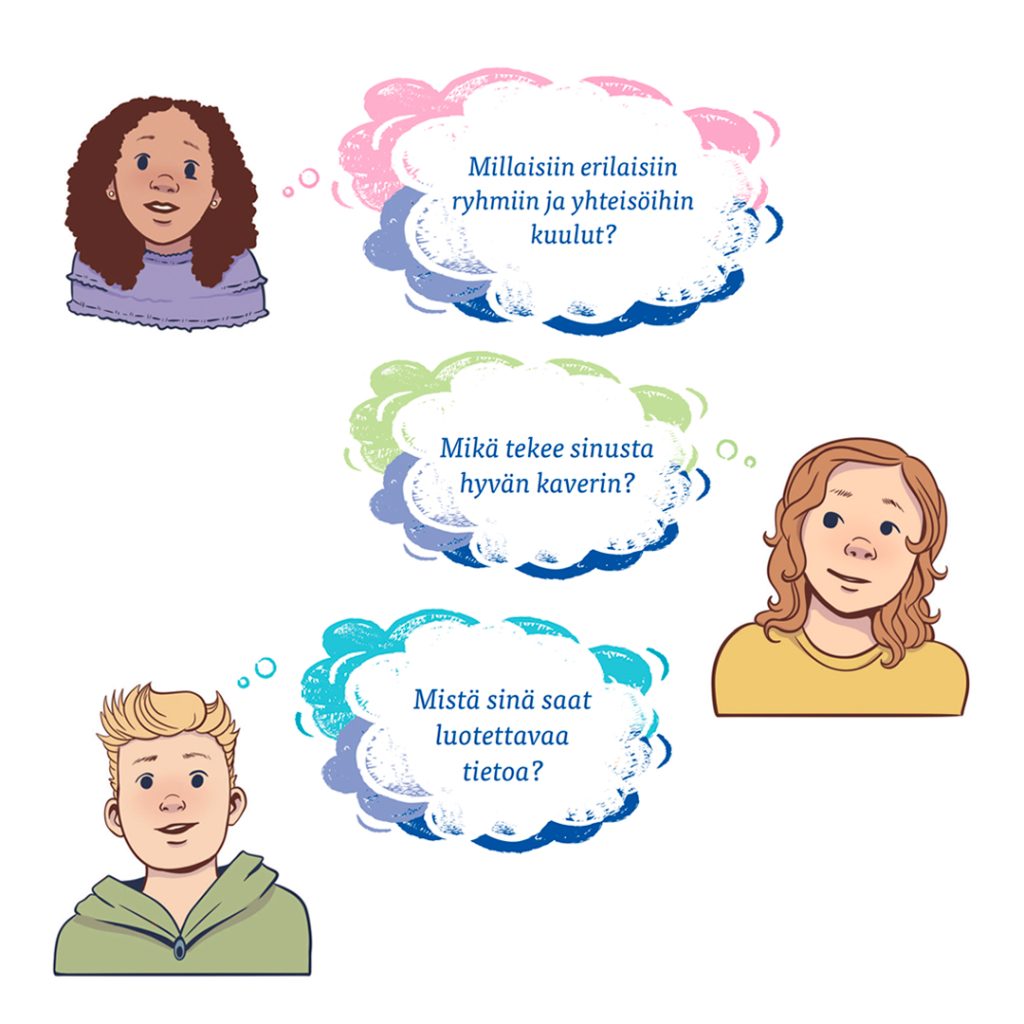 Oppikirjan sisällöt liittyvät oppilaan arkeen ja yhteiskunnan ilmiöihin sukelletaan lapsen arjen kautta. Jokaisen luvun taitosivut kehittävät monilukutaitoa. Samalla ne vahvistavat kriittistä ajattelua, vuorovaikutustaitoja ja vaikuttamisen valmiuksia – taitoja, joita tulevaisuuden kansalaiset tarvitsevat.